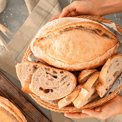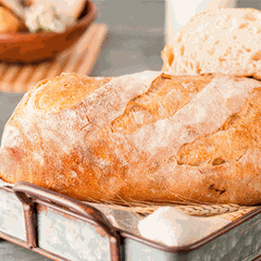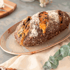 É uma receita saudável e com fermento natural au levain que leva 30 horas de fermentação. Pão extremamente saboroso, casca crocante, com miolo leve e úmido que combina com vários tipos de antepastos, conservas, patês, mousses e terrine.